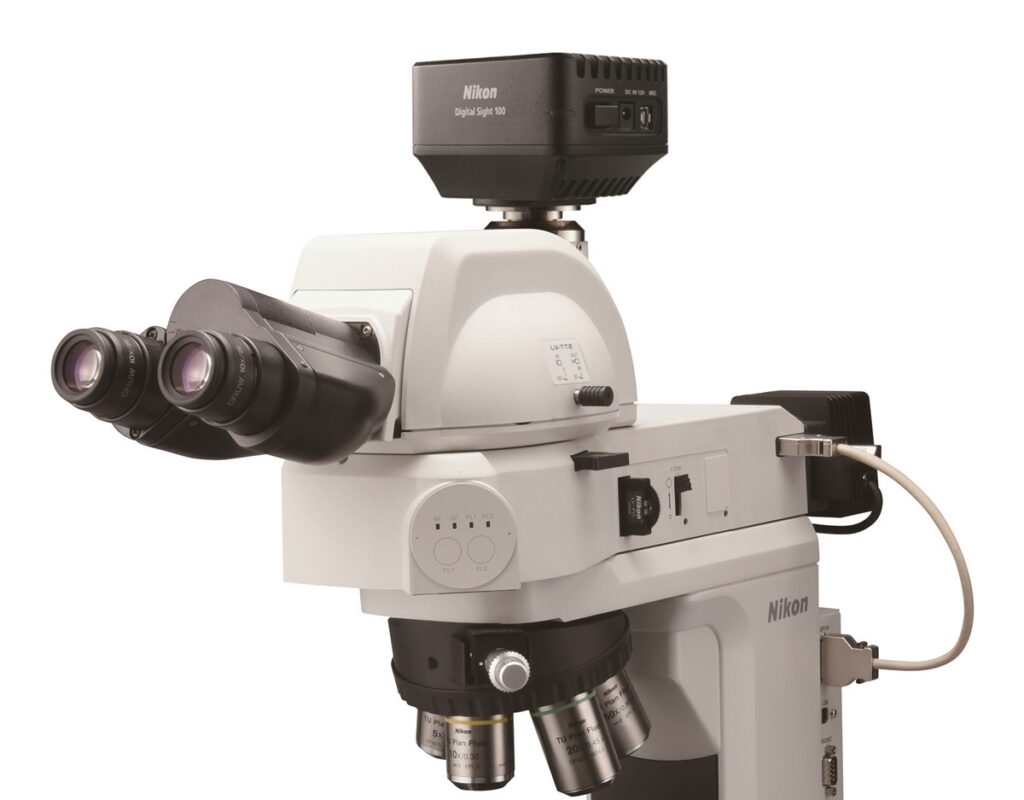 | Nikon 의 DS-100는 6.5 메가 픽셀의 CMOS 이미지 센서가 장착 된 고화질 컬러 현미경 카메라 입니다. 명시야를 기본으로 DIC, 위상차, 형광 등과 같은 다양한 관측에서 이미지 분석, 풍부 색 재현성 등에 유리한 제품 입니다. Nikon 공식 소프트웨어 NIS-Elements LE 소프트웨어를 지원하며 HDMI 3.2 뿐만 아니라 HDMI 및 Wi-Fi, 이더넷 등 다양한 호환성을 가집니다. |